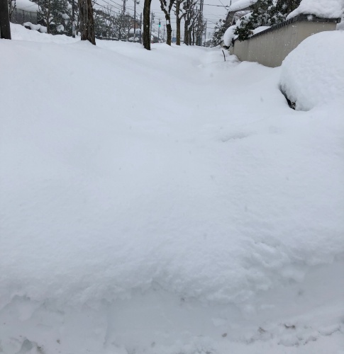普段何気なく通る歩道が全く通れません。かんじき(履いたことはないですが)があれば通れそうですが…。