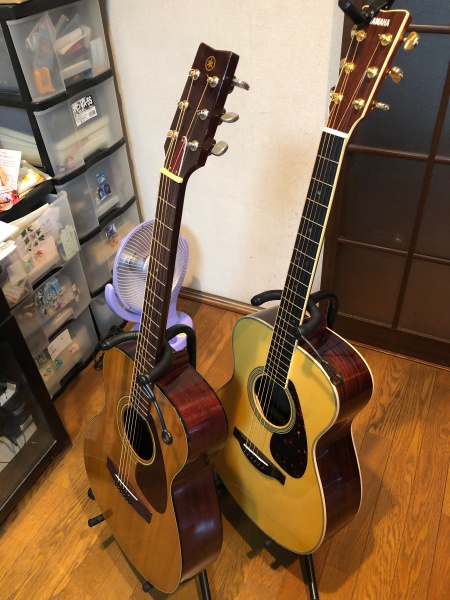 以前のブログでも書いたのですが、YAMAHAのギターは2本持っていて両方とも000サイズ(マーティンで言うところの)です。スケールはFG130の方が15mm程短いです。今までは2本同時に弾き比べる事は無かったんですが、いつものようにUフレットを見ながら初めて弾き比べて見ました。ちなみに弦はFG130 (ダダリオのカスタムライト、2ヶ月ほど前に交換)LS16 (ギブソンのライト、一週間前に交換)以前同じ弦を張っていた時は似た様な感じだと思ったんですが、だいぶ違いがあるなぁと…。条件的にはFGの方が悪いのにストロークするとFGの方が鳴る? 弦はダダリオの方が合うみたい。FGを弾いてると音がお腹に響く時があります。オール合板で安いギターなのに改めて昔の人の技術には驚かされます。今でもオークション含めネットではしつこいくらいにジャパンヴィンテージって紹介して販売していますが程度の良い個体に当たれば満足出来るかもしれません。でもギターはやっぱり実際に弾いてみて買うのが良いですね。今度はダダリオのライトゲージを買うつもりなので2本とも張り替えて比べてみたいと思います。