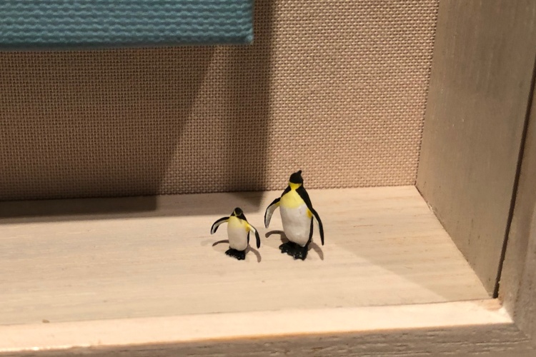 ミニチュアの生き物は約15mmだそうです。各作品に、題名があるのですがユーモアがあって、使っている部材の発想が素晴らしいです。