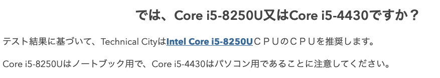 左がIntel Core i5-8250U (購入検討)で右がIntel Core i5-4430(壊れたデスクトップ)です。