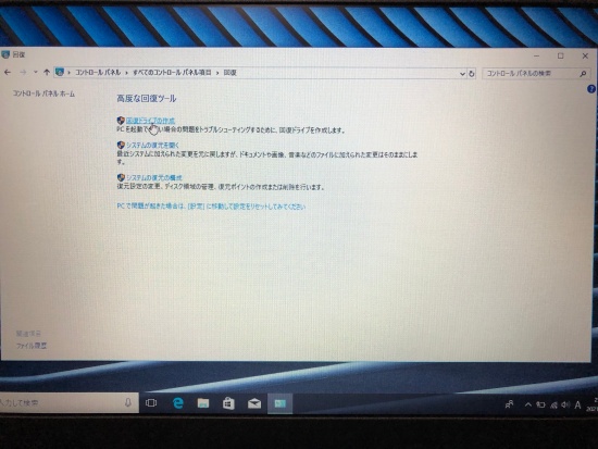 早速、回復ドライブ(リカバリディスク)を作成します。