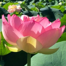 野菜のレンコンはこのはすの地下茎の事ですが、はすには花を愛でる観賞用と、野菜として食べる食用があります。という事で、お花の真ん中はレンコンに似ていますね。甘い香りがします。虫は蜜を吸っているのでしょうか?