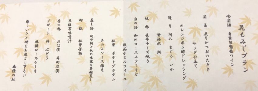 お料理のコース名は “花紅葉” 。いかにも秋らしいコースです。