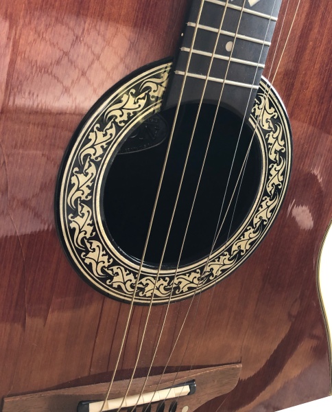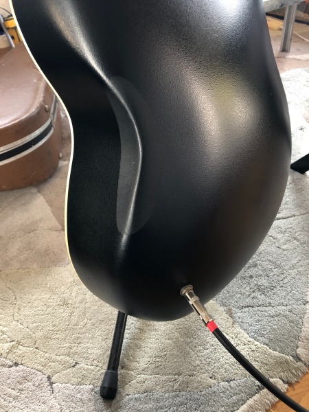オベーションはシールドの差し込みが後ろにあるので座って弾くとシールドがソファーに当たって雑音が出る事があります。気をつけないと。