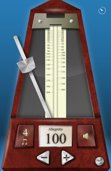 携帯に入っているGarageBandを立ち上げてメトロノームを起動。スピードを変えるのが少し手間なのでワンタッチで変える事が出来るアプリをインストールしました。