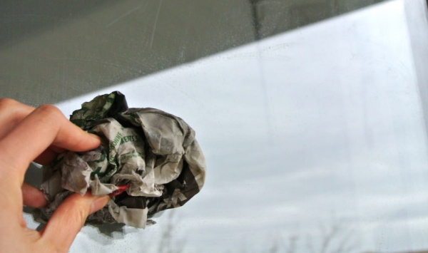 窓ガラスは新聞紙を使います。