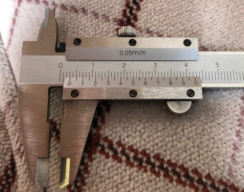 弦高を測るための金定規も持っているのですが、探しても見つからないのでノギスで測定。
