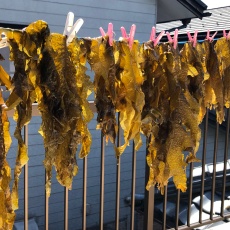考えてみると、乾燥して小さくなっていますが、元はワカメ一房(一房って呼んでいいのかな??)お腹の中で膨らむのでは?