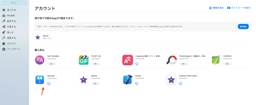 Keynote(キーノート)を使うのですが、使おうと思って初めてパソコンにKeynoteが入っていない事に気がつきました。