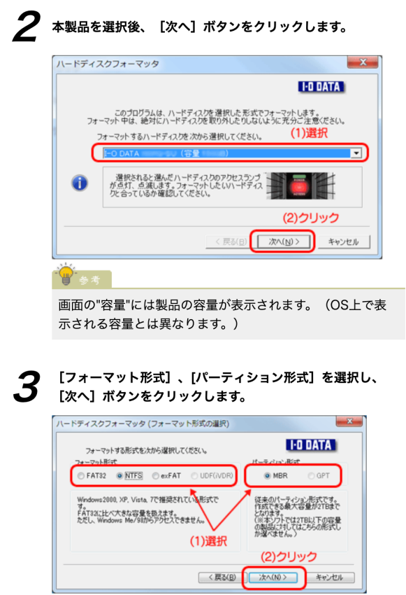 ハードディスクのフォーマットは