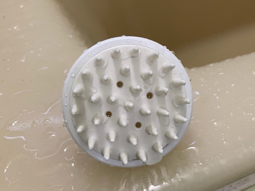 使ってみるとツノ?が満遍なく当たって効率も良い。そして柔らかいので頭皮も気持ちいい。