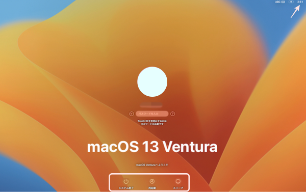 画面を消す(スリープモード)にするには、しばらく待つか、ログインしてスリープモードにするしかありません。