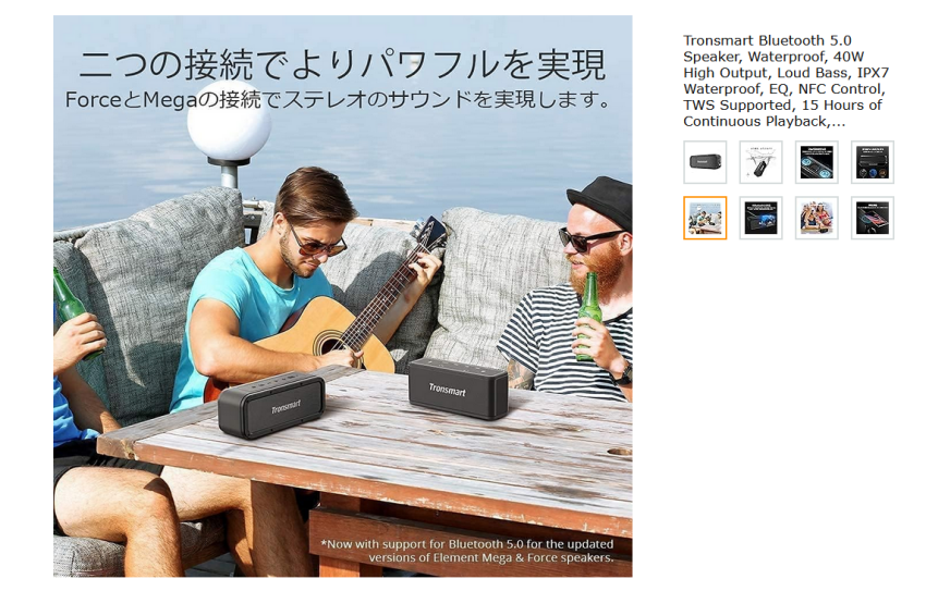 自分の場合は、Tronsmart社製のMegaというブルートゥース スピーカーを使って、YouTubeで音楽を流しています。