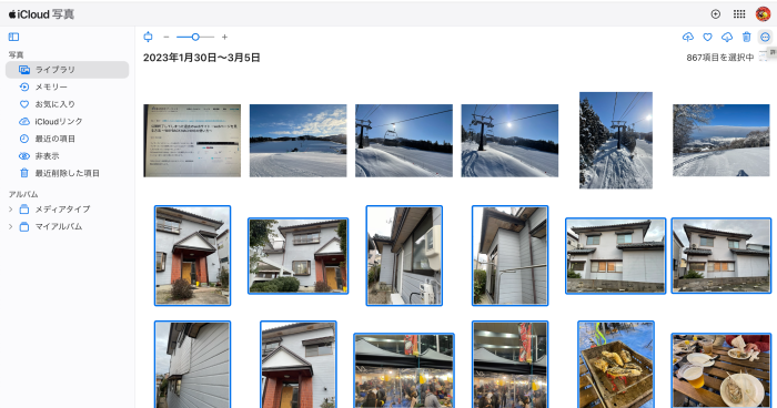 移動したい写真を選択。青い枠が付きます。(いっぺんに移動出来る写真は1000枚まで)