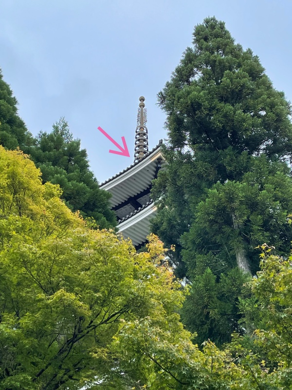 五重塔の屋根の上、矢印の一番下(名前は忘れました)矢印部です。