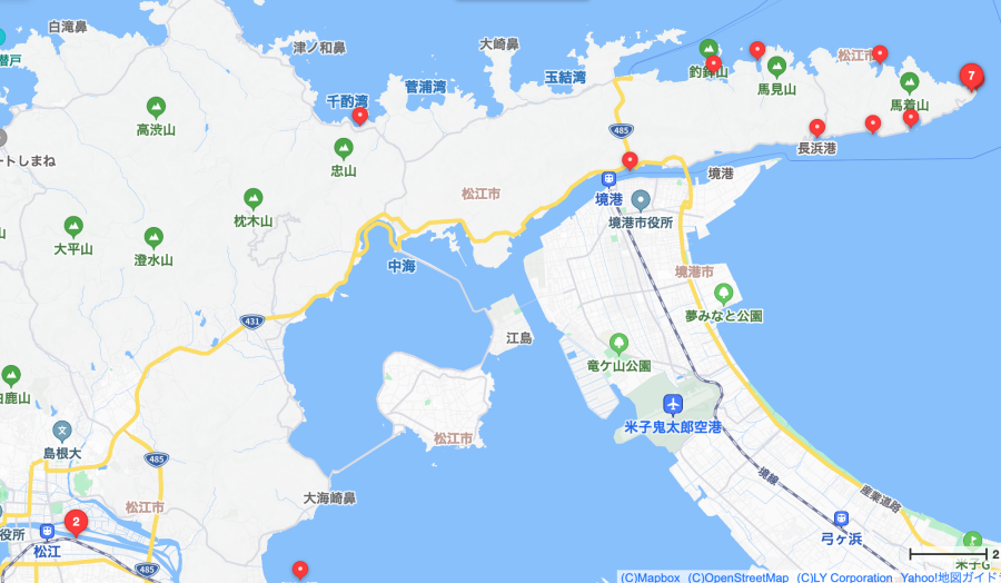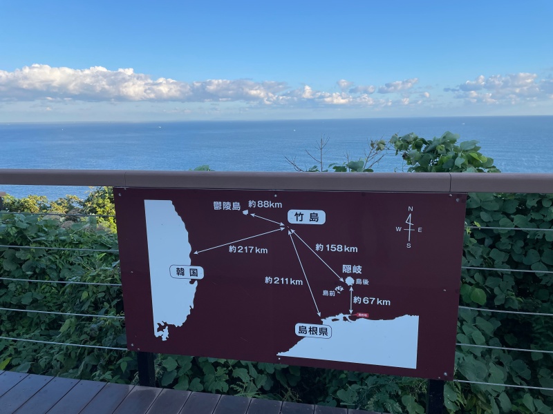 隠岐の島まで約67km、そこから竹島までは約158km。何か考えさせられます。
