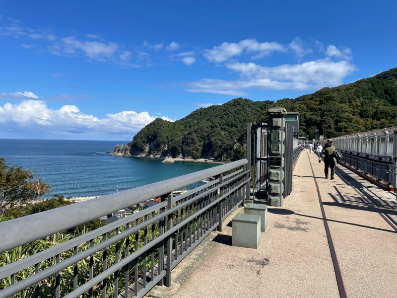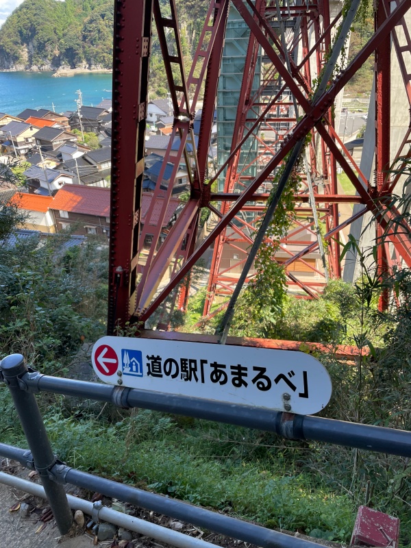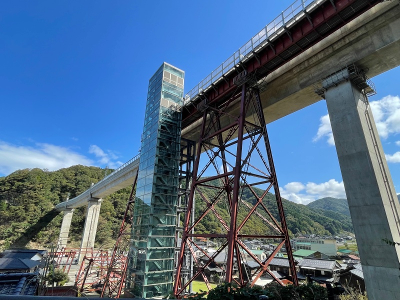 ここの道の駅は、エレベーターに乗って地上40mの旧鉄道&現鉄道の駅に行くことが出来ます。