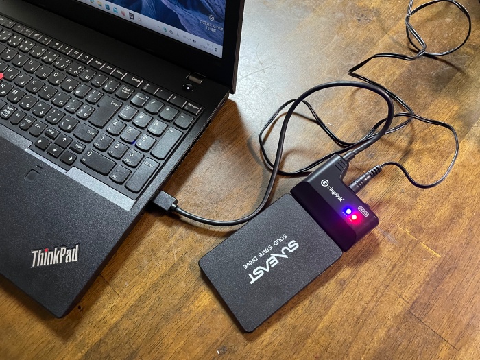 このケースのレビューを見てみると、認識しないとの意見が数件ありました。やはり安物はダメかと思ったのですが、別の接続方法で繋げてみてもダメ。