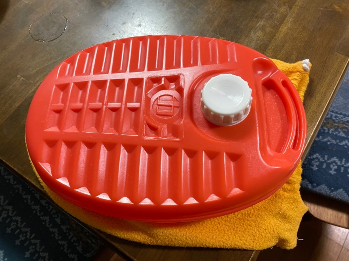 朝起きても湯たんぽの中のお湯は暖かいので、顔を洗うのにも使えます。(昭和っぽい)