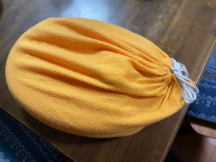 お湯を入れてから付属の袋に包んで、嫁さんのお布団に。嫁さんと自分は寝る時間差があるので、嫁さんの布団が温まったら自分の布団に置いておいてもらいます。