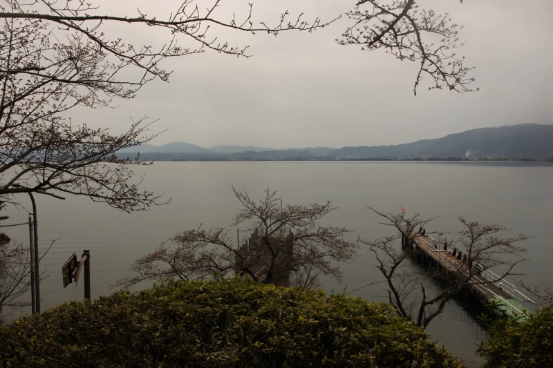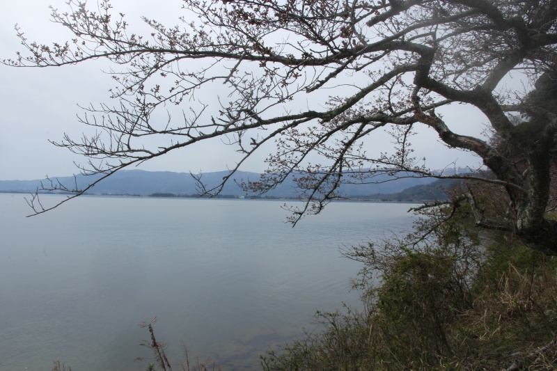 遠出をする時は、お風呂に入る準備して出かけるのですが、奥琵琶湖パークウェイから降りて来た日帰り入浴場へ行くと廃業していました。琵琶湖を観ながらお風呂に入る構想も駄目。いい入浴施設だったので残念&寂しい。桜が咲いていないので人影もまばらです。
