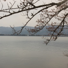 遠出をする時は、お風呂に入る準備して出かけるのですが、奥琵琶湖パークウェイから降りて来た日帰り入浴場へ行くと廃業していました。琵琶湖を観ながらお風呂に入る構想も駄目。いい入浴施設だったので残念&寂しい。桜が咲いていないので人影もまばらです。