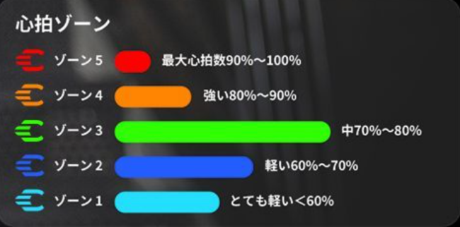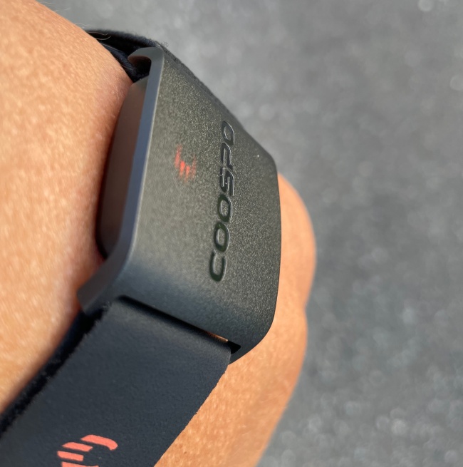 腕に着けるとこんな感じ。心拍数によって色が変わります。(5色)