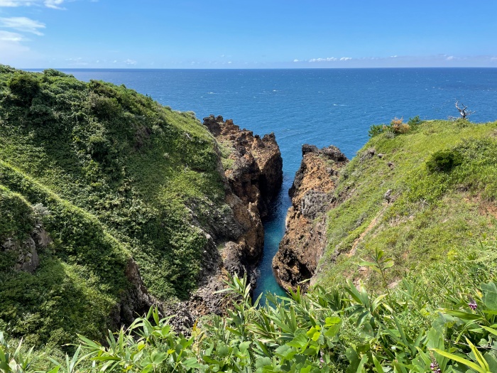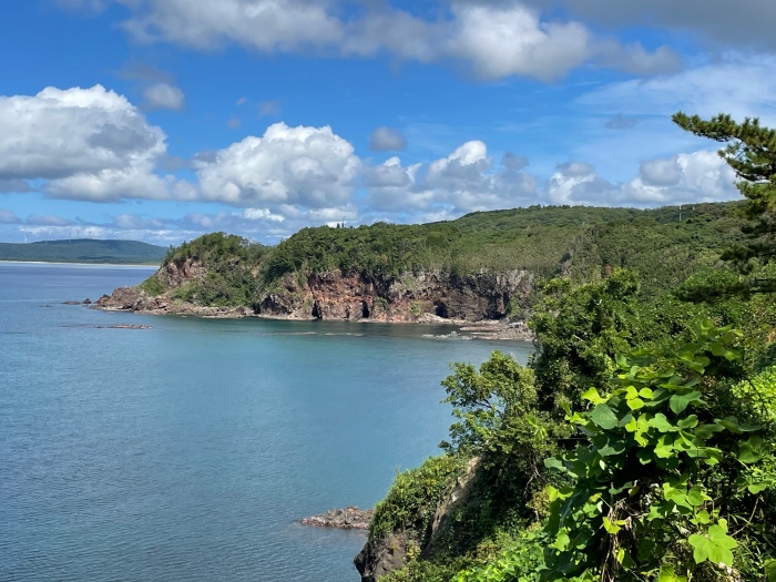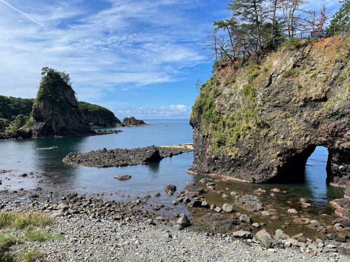 猪鼻岬(いのはなみさき)が見えるお店でソフトクリームを頂きました。お店のおばさんから地震時のお話を聞きました。もう営業には全く影響無いので、この綺麗な景色を是非見に行って欲しいです。