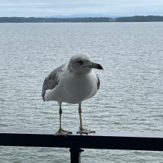 ホテルへ着いて、一服。カモメがエサをねだりにやって来ます。
