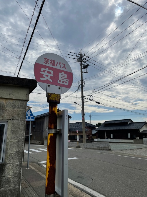 いっぱい歩いたのに、たったの二駅(荒磯遊歩道バス停まで)。でも運転手さんの観光案内ガイド付き。案内ガイドしてくれる運転手さんは京福バスでは二人しかいないとの事。乗った人はラッキーですね。