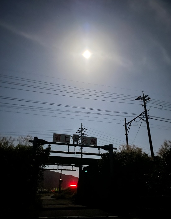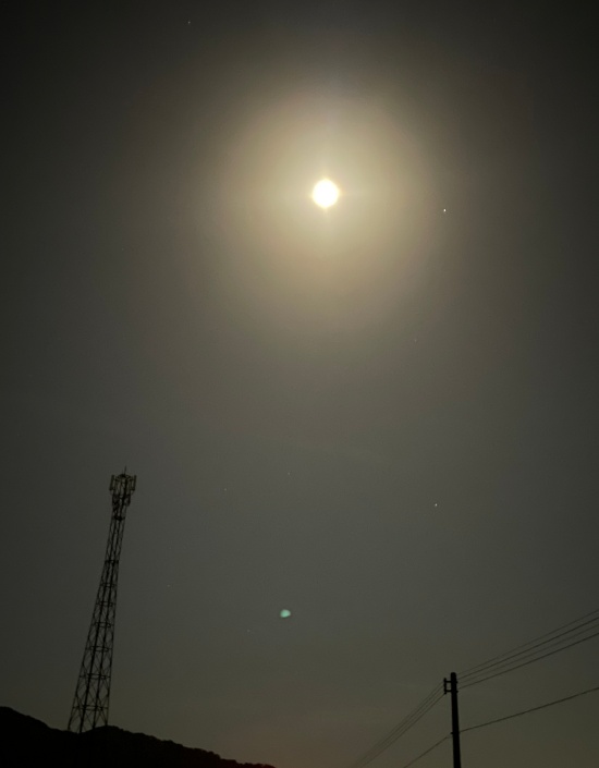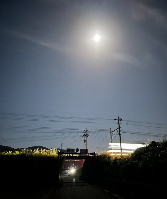 夕食後、お月様を観ながらお散歩しました。嫁さんを誘ったんですけど、「行かない」の一言。