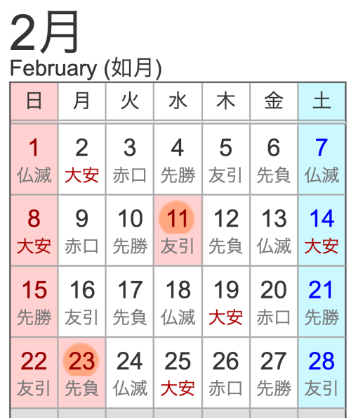 六曜(ろくよう、りくよう)は違いますが、同じ並びになります。