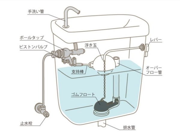フロートバルブは鎖の長さに注意するのと、ボールタップとタンクの締め付けに注意(あまり締め付け過ぎるとタンクが破損してしまいます)